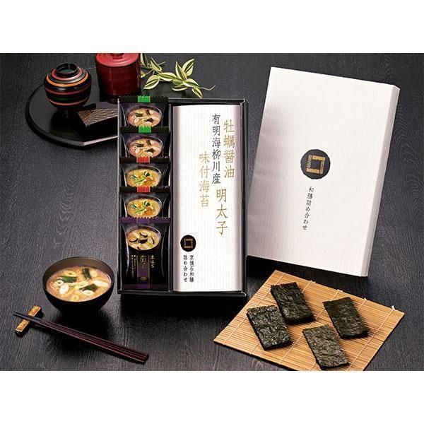 京懐石 フリーズドライ 即席味噌汁(茄子・野菜×2・長ねぎ×2)・有明海 柳川産(牡蠣醤油味付海苔・明太子味付海苔・味付海苔)各8切6枚 【小麦・えび】